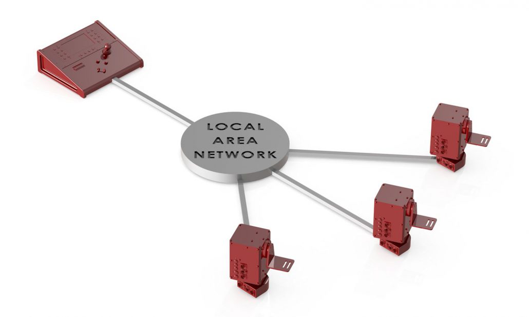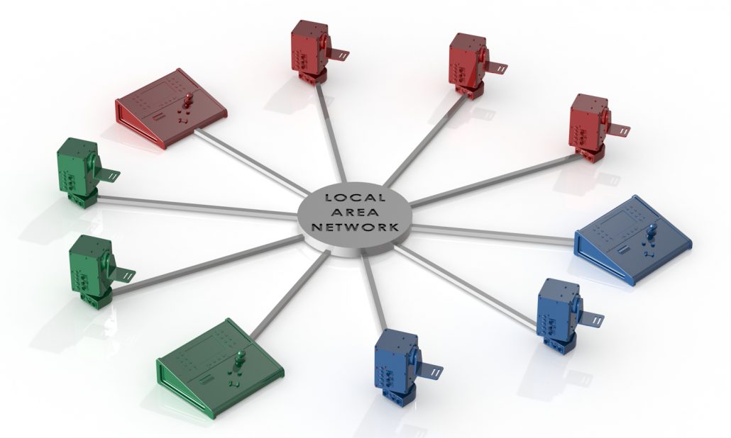 When more than one head is to be controlled they can be linked to the controller over a network. The controller and heads are simply plugged in as though they were another computer. If there is no network a ‘network switch’ can be used