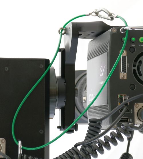 The camera arm has two loop-though points allowing it to be tethered to the sturdy handle on the head casing.